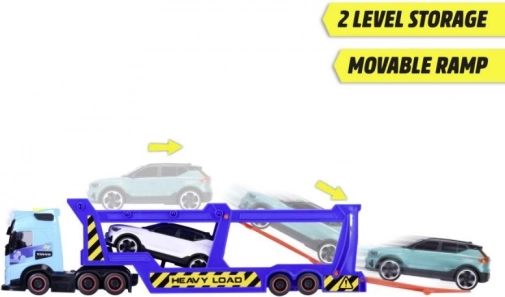 Faites découvrir aux enfants le monde du transport routier avec ce porte-voitures VOLVO FH16 détaillé. Le modèle à roue libre est prêt à l’action dès le déballage, propose des effets lumineux et sonores pour un jeu encore plus réaliste et une remorque dédiée au transport de véhicules.