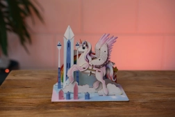 Le modèle licorne se distingue par ses couleurs vives et son aspect décoratif – parfait à exposer une fois assemblé.