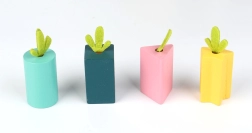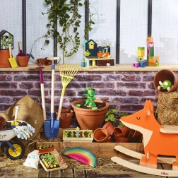 Les enfants s'amusent tout en apprenant le jardinage grâce à des imitations en bois de fleurs et de légumes.