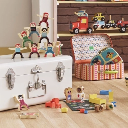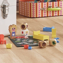 Le jeu est recommandé pour les enfants à partir de 3 ans et contient divers éléments de jeu qui garantissent du divertissement pour les petits comme pour les grands. Le jeu comprend : 1 plateau de jeu en carton, 1 Boucles d'Or en bois, 2 dés en bois, 3 lits en bois, 3 chaises, 3 bols et 1 sac en coton.