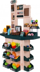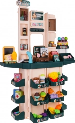 L'ensemble comprend un tableau pour dessiner, une offre riche de simulacres de nourriture et divers rayons et étagères pour stocker tous les accessoires. Ce jouet favorise la créativité et le jeu social entre les enfants.