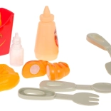 Le pack comprend divers outils de cuisine et des imitations alimentaires qui permettent un jeu interactif varié.