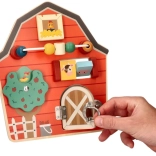 Ce tableau d’activité en bois en forme de grange est conçu pour stimuler la motricité fine et divertir les enfants. Avec un thème de ferme coloré, il éduque tout en amusant les plus petits membres de la famille. Des éléments interactifs tels que des perles coulissantes, un arbre rotatif et des petites portes avec loquet aident à développer la coordination œil-main.