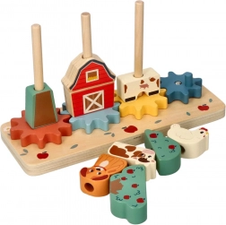 Le puzzle « Ferme folle » est conçu pour enrichir l’imagination ludique des enfants grâce à des éléments en bois peints dans des couleurs vives. Avec des pièces en forme de ferme, d’arbres et d’animaux, les enfants apprennent à placer les éléments de manière stratégique et à transformer les défis en jeu. Le jouet est équipé d’engrenages qui permettent aux enfants de découvrir les principes de la mécanique.