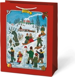Vous cherchez un emballage cadeau rapide, stylé et représentatif ? Le sac cadeau de Noël en papier avec motifs JOSEF LADA se distingue par ses illustrations hivernales traditionnelles et sa fabrication soignée. Grâce à son anse robuste, il se porte aisément et l’étiquette permet une dédicace personnelle sans emballage supplémentaire.