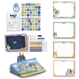Ce kit de dessin scolaire dans un adorable sac à dos BLUEY motive les enfants à s’exprimer de façon créative. Grâce au livret illustré avec instructions, les petites mains apprennent facilement les bases du dessin et du décalquage, directement sur l’ardoise pratique.