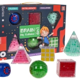 Ce coffret polyvalent combine différents types de défis logiques et moteurs : des labyrinthes transparents avec bille dans un cube et des pyramides, des casse-têtes sphériques et à billes ainsi qu’un cube de type RUBIK classique. Chaque élément encourage la patience et soutient la coordination œil-main.