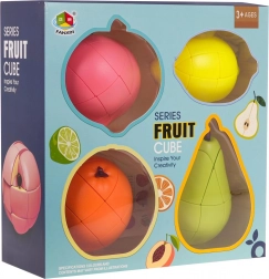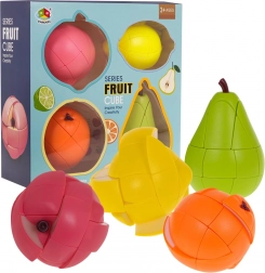 Ce set coloré comprend quatre casse-têtes 3D en forme de fruits appréciés : pomme, citron, orange et poire. Chaque modèle est composé de pièces interconnectées que l’on peut faire pivoter et réassembler. Le but, après mélange, est de remettre les pièces dans la forme du fruit d’origine – un défi amusant pour les enfants comme pour les adultes.