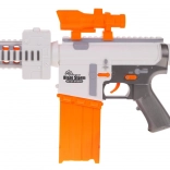 Blaster à mousse semi-automatique BLAZE STORM pour enfants dès 8 ans, offrant une action de tir rapide avec un chargeur de 10 fléchettes, une hausse réglable et une portée jusqu’à 15 m. Utilisation facile – viser, charger et appuyer sur la détente. Alimentation 5× AA (non incluses).