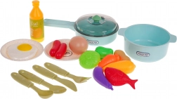Casserole, poêle, assiettes, couverts et un large choix d’aliments factices offrent aux enfants tout le nécessaire pour jouer au petit chef.