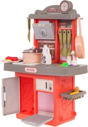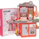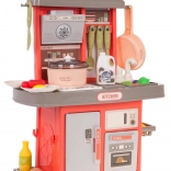Le robinet avec circulation de l’eau (petite pompe) ajoute de l’authenticité au jeu, tandis que le riche assortiment d’accessoires – vaisselle, ustensiles et aliments – permet aux enfants de préparer un « menu » selon leur imagination. La cuisine fonctionne avec 3× AA 1,5 V (non incluses).