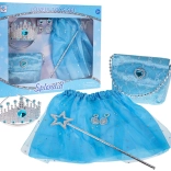 Découvrez un monde enchanteur avec notre coffret pour petite princesse. Cet ensemble soigneusement composé est idéal pour les enfants dès 3 ans et comprend une couronne, une baguette magique, des boucles d’oreilles, un sac à main et une jupe dans de magnifiques tons de bleu, parfaits pour le carnaval ou les jeux de déguisement.
