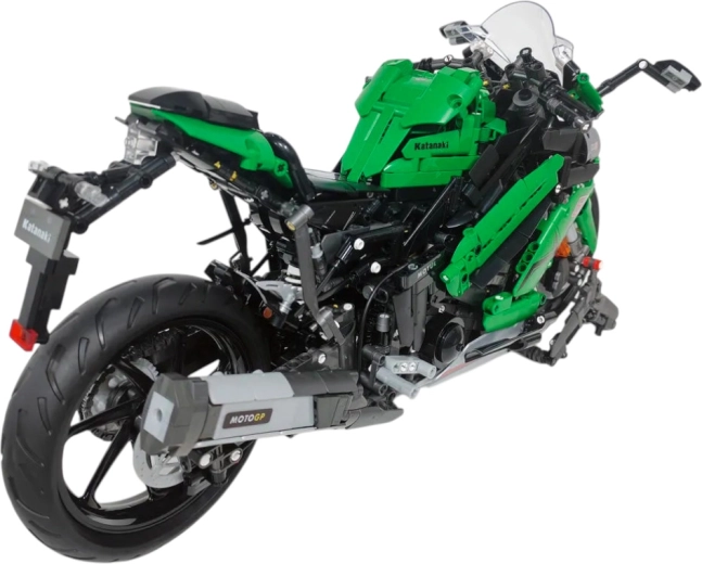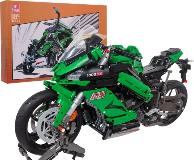 Assemblez votre propre moto sportive verte grâce à ce kit de construction unique. Grâce à 2304 pièces en plastique de qualité, ce jouet est conçu pour les enfants à partir de 8 ans et plus. La moto dispose d'une chaîne et d'un guidon mobiles, ainsi qu'une imitation réaliste du système de freinage et d'un amortisseur avant. Avec ce kit, vos enfants exerceront leurs compétences manuelles, leur imagination spatiale et leur patience.