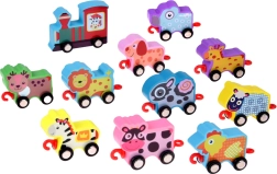 Vous cherchez un jouet alliant apprentissage et amusement? Ce petit train en bois avec des animaux est la solution idéale pour les enfants dès 12 mois. Il est composé d'une locomotive et de dix wagons, chacun décoré avec un animal différent et doté de couleurs vives.