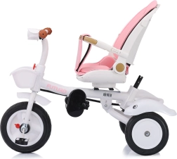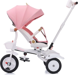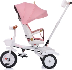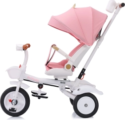 Le tricycle avec auvent 2‑en‑1 Futuro Princess Chipolino combine confort, sécurité et plaisir. Grâce au siège pivotant (face ou dos à la route), à la poignée parentale réglable en hauteur et aux éléments pliants, il s’adapte facilement aux besoins actuels de l’enfant comme du parent. Le guidon avec musique et lumière transforme chaque sortie en moment de joie.