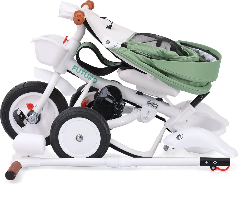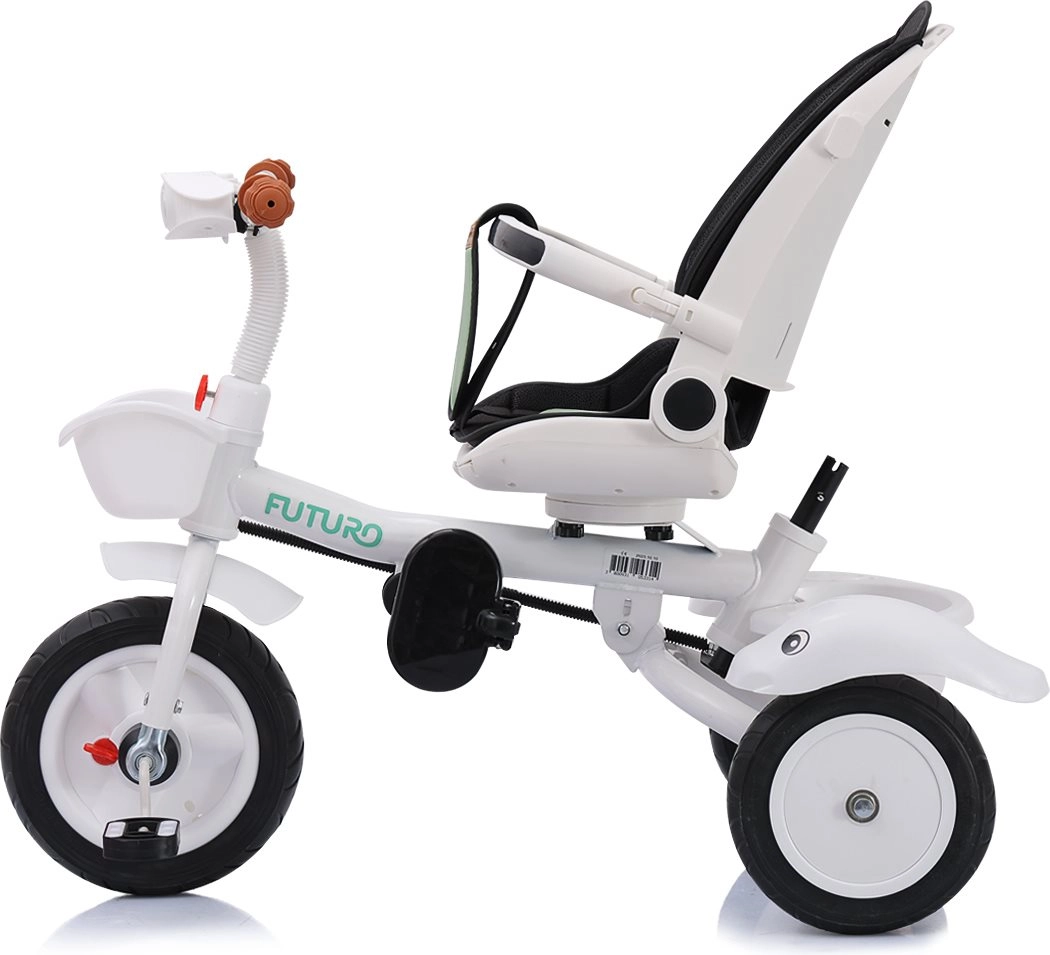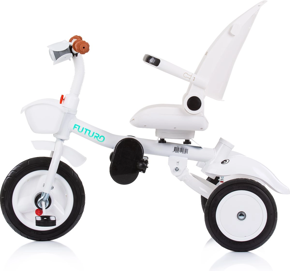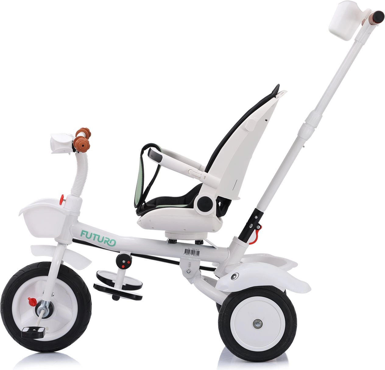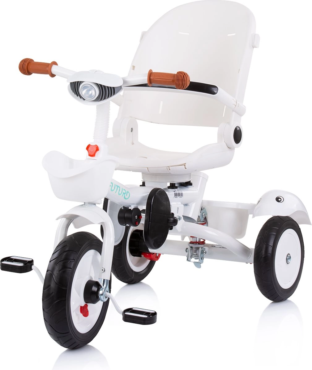 Produit multifonctionnel Chipolino Tricycle avec auvent Futuro avec 2 modes d’utilisation différents – le parent pousse l’enfant ou l’enfant conduit lui‑même le jouet à l’aide des pédales. Le tricycle deviendra un excellent compagnon qui grandira avec l’enfant.