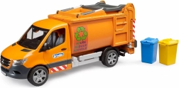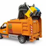 Ce camion-benne urbain BRUDER reproduit fidèlement le MERCEDES-BENZ Sprinter réel. Grâce à ses dimensions compactes, il « accède » partout où les grands camions à ordures ne passent pas. Lors du basculement des poubelles, le clapet de toit s’ouvre automatiquement et se referme après la descente. Les portes arrière basculantes permettent de vider facilement la cargaison.