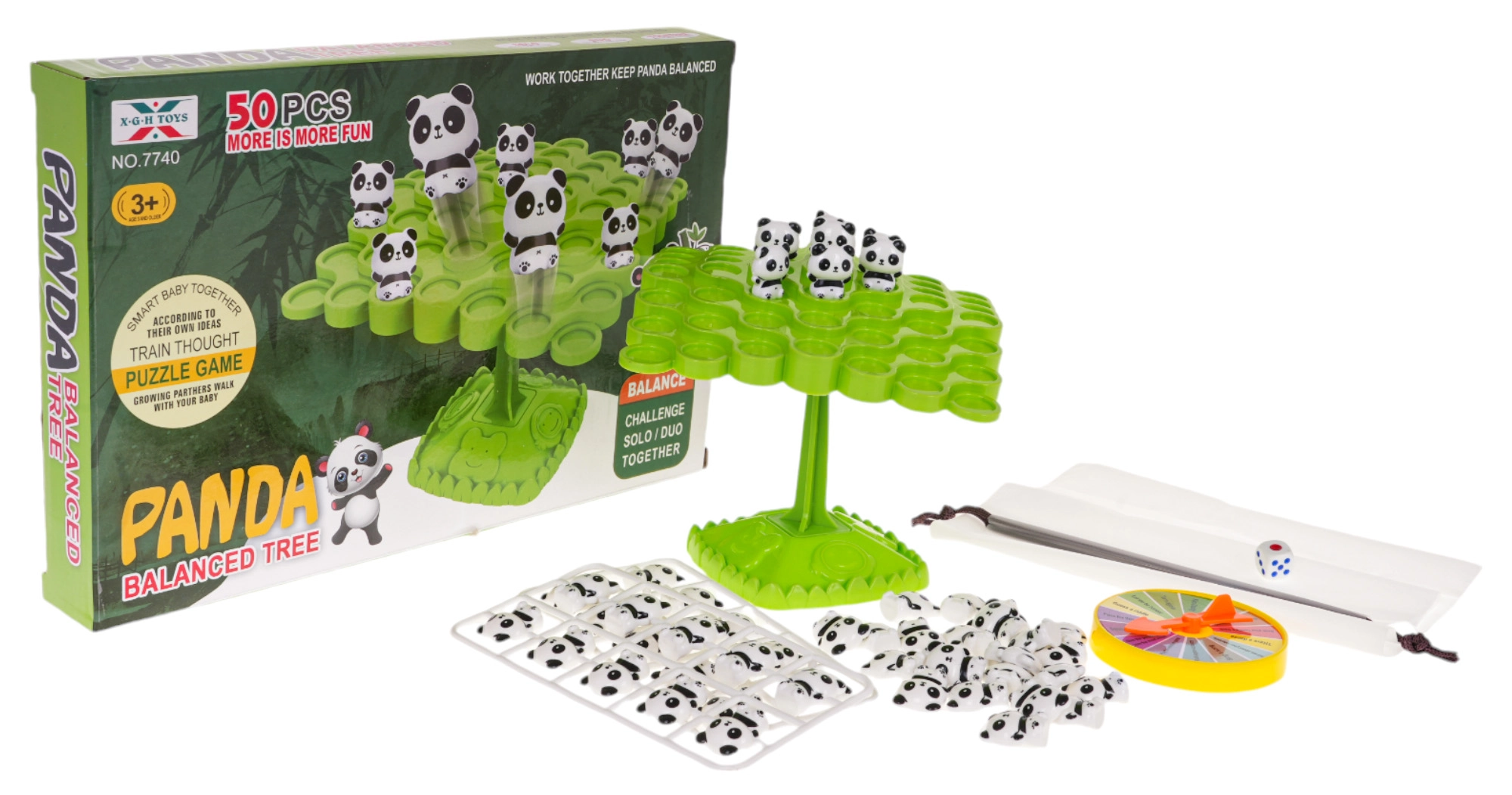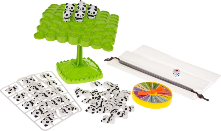 | Découvrez comment y jouer. . | Jeu d’arcade Panda pour enfants à partir de 3 ans. Le jeu comprend un support, une tige, un plateau de jeu, des figurines de pandas, un dé et une roue de missions. Les joueurs doivent placer ou retirer du plateau autant de figurines de pandas que l’indique le lancer de dé, et réaliser les missions indiquées sur la roue. Le joueur qui provoque en premier l’effondrement de la construction perd la partie. Le jeu améliore la mémoire, enseigne la pensée logique et apprend la patience. .. Caractéristiques du jeu : . - jeu d’arcade, .- destiné aux enfants à partir de 3 ans, .- développe la pensée logique, .- apprend la patience, .- apprend à compter, .- améliore la coordination œil-main, .- une excellente idée pour passer du temps en famille. . |