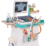 Cette chariot médical magique est léger et facile à manipuler grâce à ses grandes roues et sa poignée pratique. Votre enfant peut devenir médecin, ophtalmologiste, cardiologue ou dentiste. L'ensemble comprend un panneau avec un moniteur simulant les sons du battement de cœur et d'alarme, avec possibilité de changer les images ECG et R-X. Convient aux enfants de 3 ans et plus.