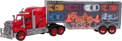 Découvrez le plaisir de jouer en voyage avec le grand camion qui transporte 6 petites voitures colorées et un ensemble de panneaux de signalisation dans sa remorque transparente. Les portes arrière de la remorque s’ouvrent et créent une rampe d’accès pour une sortie fluide des véhicules. Une fois détachée, la remorque se transforme en valisette avec poignée confortable, afin que les enfants puissent emporter leur parc automobile partout.