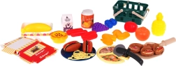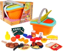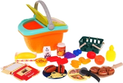 Il comprend un grand panier avec anse et un petit panier, un large choix d’aliments en plastique (fruits, légumes, boulangerie, viande, desserts) et des accessoires pratiques comme une petite assiette, une pelle à pizza et une roulette à pizza. Grâce à sa conception robuste et à ses finitions détaillées, le set est idéal pour s’amuser dehors comme pour jouer à la maison.