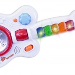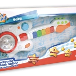 Les effets lumineux ajoutent du fun et de l’énergie à chaque session de jeu. Alimentation par 3 piles R6 / AA 1,5 V, non incluses. La guitare convient aux enfants à partir de 1,5 an et mesure 17 x 40 x 5 cm.