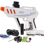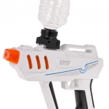 Le pistolet à gel automatique est fabriqué en plastique de qualité et conçu pour un jeu rapide et fluide. Il suffit d’installer le réservoir supérieur avec les billes préalablement préparées, d’appuyer sur la gâchette et de profiter d’un tir ininterrompu jusqu’à ce que le réservoir soit vide. Grâce au canon éclairé et au silencieux, il a également un effet visuel marquant en faible luminosité.