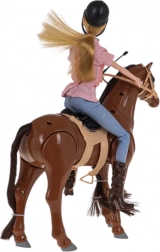 Ce set attractif relie l’univers des poupées et des chevaux – idéal pour les petits passionnés d’équitation. La poupée possède des bras, jambes et tête mobiles ainsi que de magnifiques cheveux longs. Le cheval fonctionne avec 3× AA (incluses) et peut avancer, bouger la tête et hennir, pour un jeu au réalisme maximal.