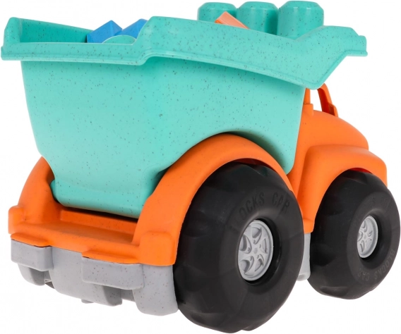 Camion-benne éco coloré avec blocs en bioplastique résistant pour enfants dès 3 ans, offrant un jeu sûr, une benne mobile et de grandes roues à rotation libre. Inclus 7 blocs pour construire et développer la motricité fine. Le matériau est respectueux de la nature, le jouet présente des formes arrondies et des couleurs vives.