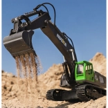 La télécommande 2,4 GHz offre un contrôle total de toutes les fonctions de la pelle, y compris les déplacements, les virages et le mouvement du godet.