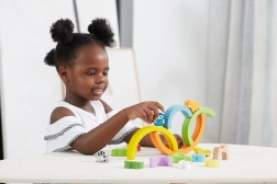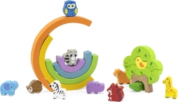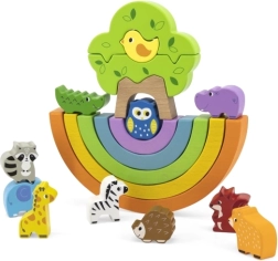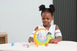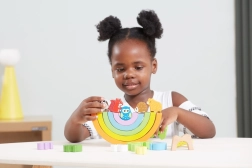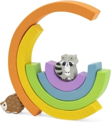 Les cinq arches de l’arc-en-ciel apprennent aux enfants à reconnaître les couleurs et leur ordre, tout en entraînant la patience et l’équilibre lors des exercices de bascule.