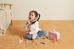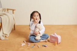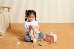 Offrez à la petite maquilleuse son propre coin beauté. La trousse textile stylée garde tous les accessoires « cosmétiques » en bois au même endroit et permet de les emporter partout. Le jeu favorise la motricité fine, l’imagination et le développement des compétences sociales lors des jeux de rôle.