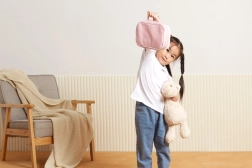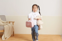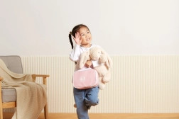 La trousse textile rose PolarB garde tous les accessoires bien rangés ensemble et facilite le transport en voyage, chez les grands-parents ou en visite.