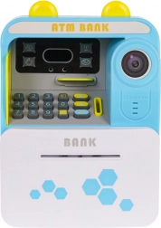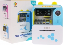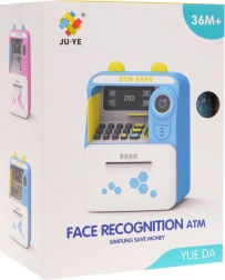 Distributeur automatique interactif pour enfants – tirelire avec imitation de reconnaissance faciale apprend aux enfants le calcul, la valeur de l’argent et l’épargne. Il possède des bords arrondis sûrs, un écran numérique, des effets sonores et une voix en anglais. Il s’active en insérant une fausse carte de paiement et propose dépôt, retrait, consultation du solde et changement de code PIN. Pour les enfants dès 3 ans.