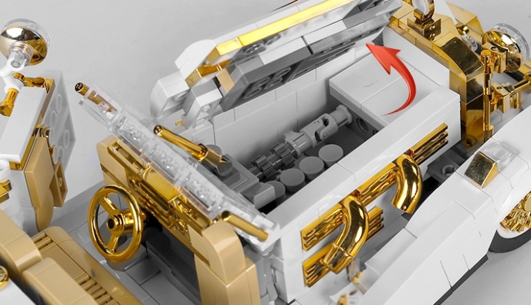 Le modèle est pensé dans les moindres détails : portes, capot et coffre ouvrants complétés par des éléments chromés dorés qui lui confèrent une allure luxueuse. Le kit convient dès 8 ans et favorise la patience, l’habileté et la créativité. La boîte contient un manual illustré clair, pour que même les débutants réussissent la construction.