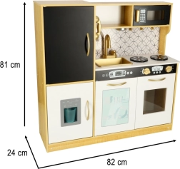 Chaque détail a été soigneusement conçu pour offrir aux enfants une expérience complète. La hauteur du plan de travail est de 46 cm du sol, idéale pour les petits cuisiniers.