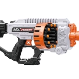 Pour l’utiliser, vous aurez besoin de 6 piles AA, non incluses. Le levier de déverrouillage du chargeur est facilement accessible grâce au bouton orange, ce qui vous permet de changer de chargeur rapidement pendant le jeu.
