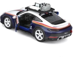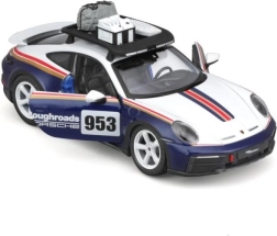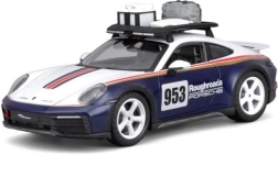 Faites plaisir à vous-même ou aux enfants avec ce modèle réaliste de Porsche 911 Dakar à l’échelle 1:24. Ce modèle die-cast dans la combinaison de couleurs bleu, blanc et bandes rouges séduit par ses proportions précises, ses emblèmes Roughroads et son numéro iconique 953. La construction métallique associée à des détails en plastique garantit durabilité et fidélité à l’original.
