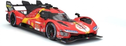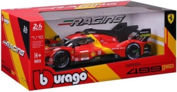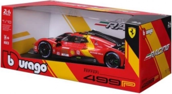 L’iconique prototype FERRARI 499P dans l’interprétation haut de gamme de BBurago offre une reproduction réaliste qui met en valeur l’ADN de course de la voiture : lignes marquées, aileron arrière, prises d’air et répliques précises des logos des sponsors. Les pièces métalliques sont complétées par des détails en plastique pour une fidélité maximale à l’original.