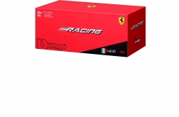 La carrosserie en métal robuste, complétée par des pièces en plastique, des roues roulantes et des éléments extérieurs soigneusement exécutés (rétroviseurs, aile, diffuseur) soulignent l’aspect réaliste. Le modèle est livré dans l’emballage d’origine Ferrari Racing, prêt à être offert comme cadeau stylé aux passionnés de sport automobile.