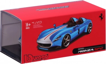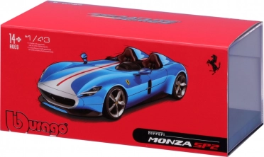 Profitez du roadster iconique Ferrari Monza SP2 dans un format compact. Issu de la gamme Bburago Signature Series, ce modèle offre une excellente qualité d’assemblage, une calandre réaliste, des phares et des bandes de course. La carrosserie métallique avec éléments en plastique est robuste et se démarque magnifiquement en exposition.
