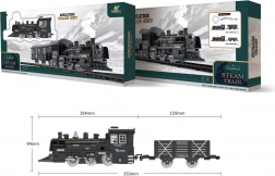 La locomotive se contrôle via un commutateur ON/OFF pratique sur le côté gauche et fonctionne avec 4× piles AA (non incluses). Pour l’effet de fumée, un réservoir d’eau est placé sous la cheminée argentée, avec remplissage facile grâce au récipient fourni.