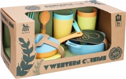 La vaisselle de cuisine écologique en bioplastique offre aux enfants à la fois amusement et apprentissage. L’ensemble est léger, sûr et durable – idéal pour le jeu quotidien et le développement de l’imagination. Il contient tout le nécessaire pour une petite cuisine : poêle avec couvercle, casserole, assiettes, verres et couverts. Convient aux enfants à partir de 3 ans.