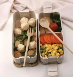 L'ensemble comprend également des couverts en paille de blé. Ces outils pratiques comportent une cuillère et une fourchette avec un bord ondulé à utiliser comme couteau. Les couverts s'insèrent facilement dans la lunchbox, vous assurant de toujours les avoir à portée de main.