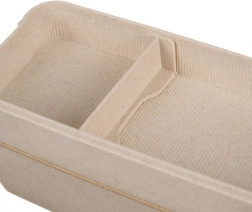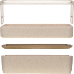 La boîte est fabriquée à partir de matériaux respectueux de la nature comme la paille de blé, garantissant ainsi durabilité et entretien facile.