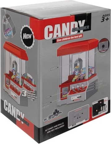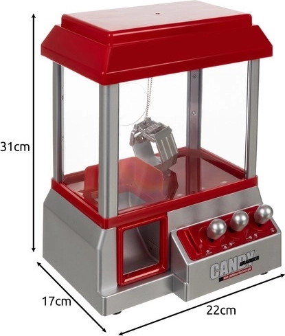 Commande et MÉCANISME de capture des bonbons - La machine attrape-bonbonsfonctionne comme un véritable automate.À l’avant du jouetse trouventtrois joysticks en PS durable, quipermettent un contrôle total de la griffe.Le premier joystick déplace le mécanisme d’avant en arrière, le central vers la droite et la gauche, et le troisième abaisse et soulève la griffe en acier,fixée au portique par une chaîne à maillons robuste. L’ensemble du processus d’attrape de bonbons estexceptionnellement fluide et réaliste et la joie de saisir ses friandises préférées est renforcée par une excitation ludique.Une fois le bonbon attrapéil est habilement déposé dansl’ouverture illuminée en rouge, ce qui ajoute une touche de fun supplémentaire au jeu.