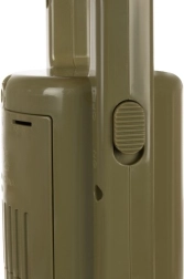 - Aspirateur réaliste avec deux embouts (large avec roulettes et tête mobile, fin pour les coins) et réservoir transparent pour les « saletés ».