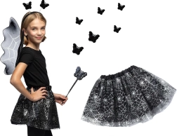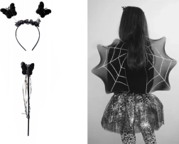 Transformez une petite coquette en créature magique à la touche sombre : le set comprend une jupe en tulle à motif toile d’araignée, des ailes légères, un serre-tête avec papillons et une baguette magique. Grâce à la taille élastique, au tissu léger et à la taille enfant universelle, c’est idéal pour Halloween, le carnaval et les fêtes à thème.