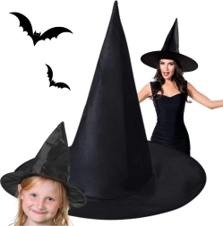 Un élégant chapeau de sorcière noir apportera l’atmosphère idéale à votre déguisement. Il possède un cône haut classique avec un large bord et est fabriqué dans un textile agréable. Parfait pour Halloween, le carnaval et les soirées à thème, et grâce à sa taille universelle, il s’adapte facilement. Il peut être décoré d’un ruban, d’une boucle ou d’une toile d’araignée pour un look magique et un design unique encore plus marqués.