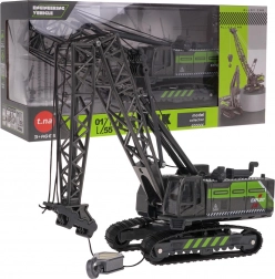 Cette grue noir‑vert combine des pièces métalliques robustes avec des fonctions réalistes qui stimulent l’imagination et la motricité fine. Les enfants règlent aisément la flèche à la main, abaissent ou soulèvent le crochet et font pivoter la cabine, comme sur une véritable machine de chantier.